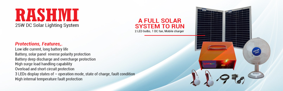 This system helps to have Power when it is most needed, specially after dusk, for children to study, for kitchen, small tasks at home. This Lighting system is best suitable for rural small houses like huts, very small shops, business This is small independent system of only DC power supply. The panel can be kept on the roof.System includes two LED bulbs and one DC fan. The system is indigenously developed in India by Banyan Link Co Japan.